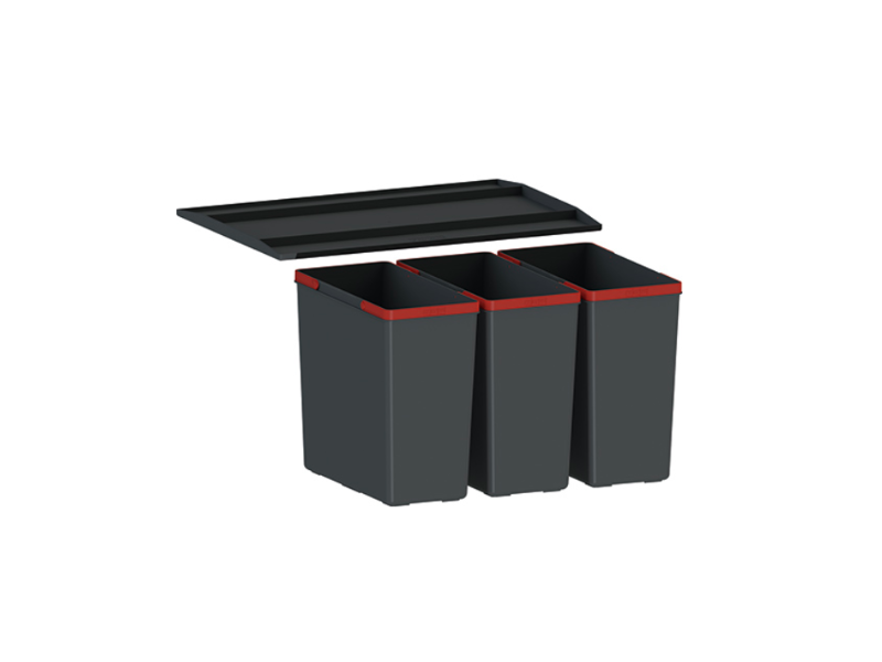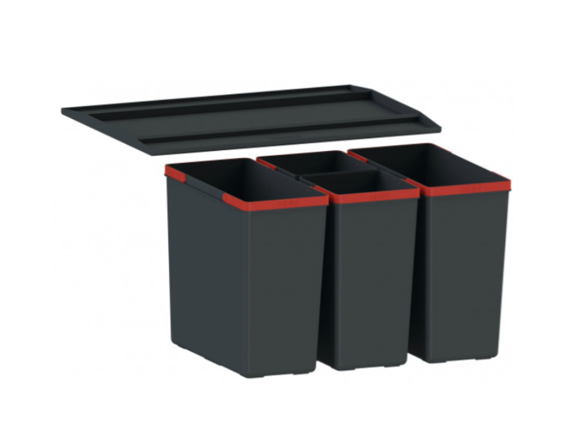 Skladem Min. montážní prostor: 564 × 378 × 343 mm Objem: 3 × 14,5 l Třídění odpadků: Třídruhové Barva: Černá 3 Koše (Výška košů 324 mm) Police nad košem v ceně koše Koš se vkládá do z ...