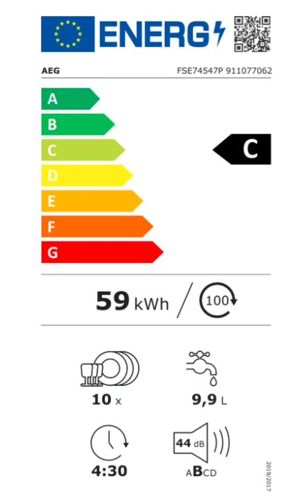 Energetická třída C Spotřeba energie (program ECO) 59 kWh/100 c. Kapacita sad nádobí 10 × Doba trvání (program ECO) 4,5 h (270 min) Spotřeba vody na cyklus (program ECO) 9,9 l ...Více informací
