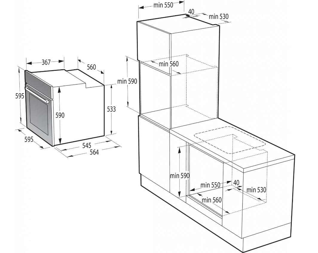 Výška pro vestavbu cm 59