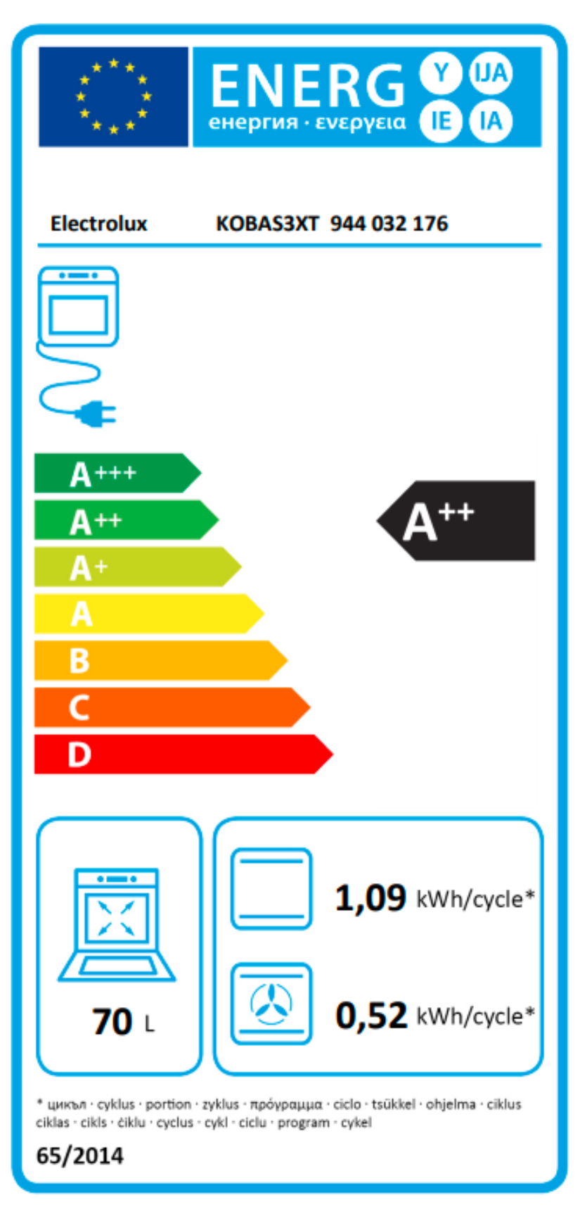 Spotřeba energie se standardním zatížením (kWh/cyklus): 1.09